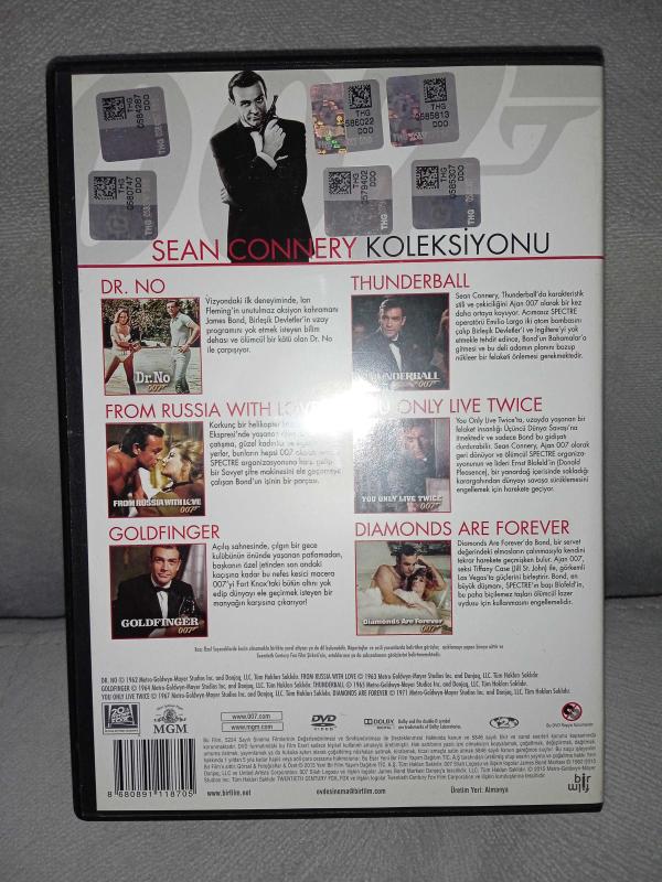Dvd 007 James Bond Sean Connery Koleksiyonu. 6xDVD Box Set, Special Edition. Orijinal Türkçe desteği mevcut. Diskler 10 üzerinden 9.5 tertemiz sorunsuz çalışıyor koleksiyonluk 007 James Bond - Dr. No 007 James Bond - From Russia With Love - Rusyadan Sevgilerle 007 James Bond - Goldfinger - Altın Parmak 007 James Bond - Thunderball - Yıldırım Harekatı 007 James Bond - You Only Live Twice - İnsan İki Kere Yaşar 007 James Bond - Diamonds Are Forever - Ölümsüz Elmaslar