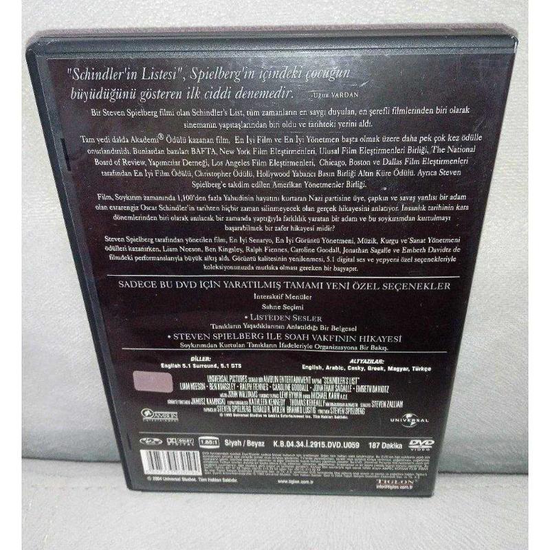 Dvd Schindler'in Listesi. Orijinal. Türkçe altyazılı. 2 diskli. Diskler Tertemiz koleksiyonluk