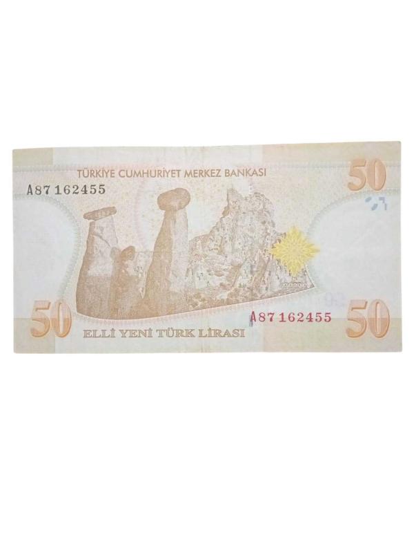 E 87 / 8. Emisyon 50 Yeni Türk Lirası Koleksiyon Cumhuriyet Dönemi Kağıt Para.