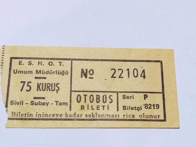 E.S.H.O.T. BELEDİYE OTOBÜS BİLETİ 75 KURUŞ, en son 2 yıl önce güncellenmiştir.
