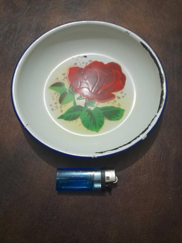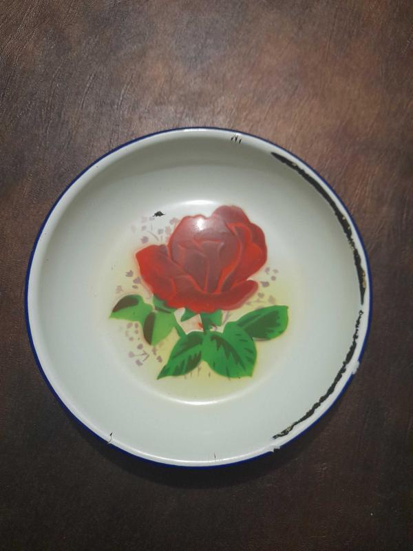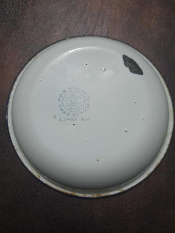 Kabartmalı Çiçek desenli Dönem çinko emaye tabak ÇİN MALI DAMGALI derinlik 3 cm çapı 17 cm. Atıklar var