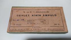 E2--Açılmamış paketinde kinin 10 adet devlet kinin iğne ampulu.1948 Ankara komprime ve ampulleri imalathanesi-240 kr başlıklı antika/koleksiyon objesi Türkiye menşe’lidir. 1950-1999 arası dönemine aittir.