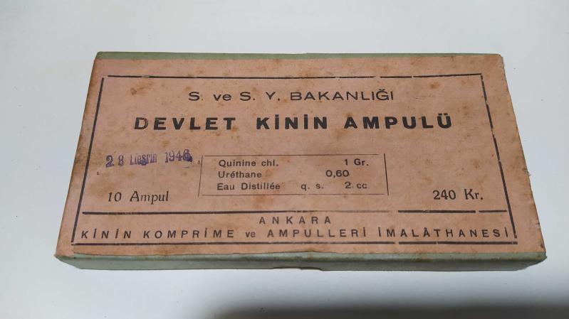 E2--Açılmamış paketinde kinin 10 adet devlet kinin iğne ampulu.1948 Ankara komprime ve ampulleri imalathanesi-240 kr, en son 2 yıl önce güncellenmiştir.