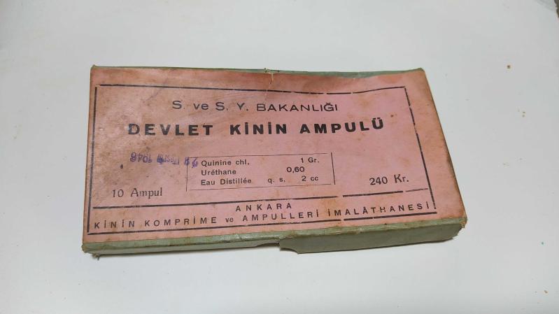 E2--Açılmamış paketinde kinin 10 adet devlet kinin iğne ampulu.1948 Ankara komprime ve ampulleri imalathanesi-240 kr, en son 2 yıl önce güncellenmiştir.