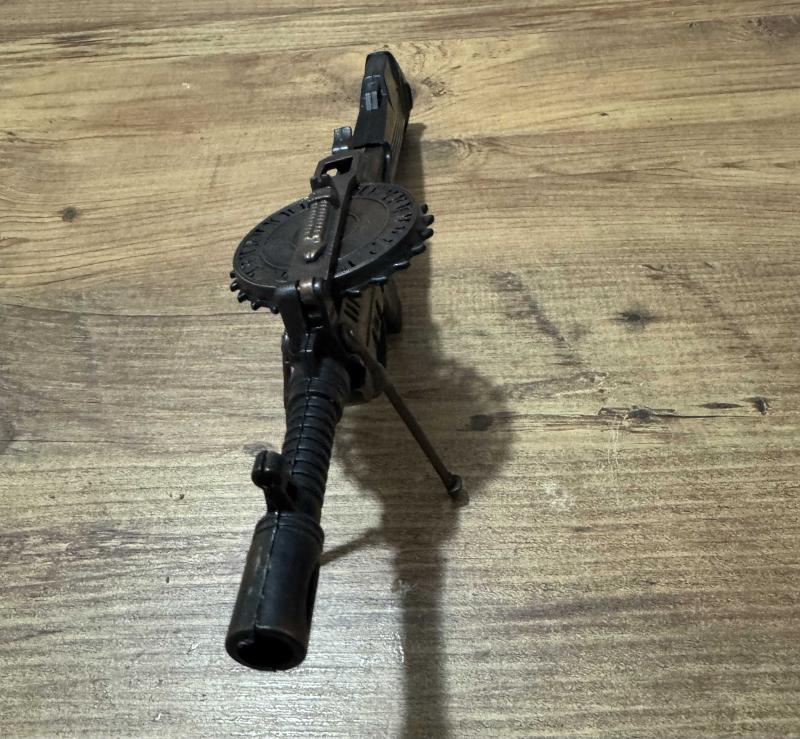 EAGLE 55 Lewis Tarzı Mini Obje Tarihi WWI Lewis Gun'dan esinlenilmiş metalik model. Üzerinde EAGLE 55 yazısı bulunur. Dekoratif veya hediyelik amaçlı Boy 30 cm, 8 saat önce kitantik’te satışa sunulmuştur.