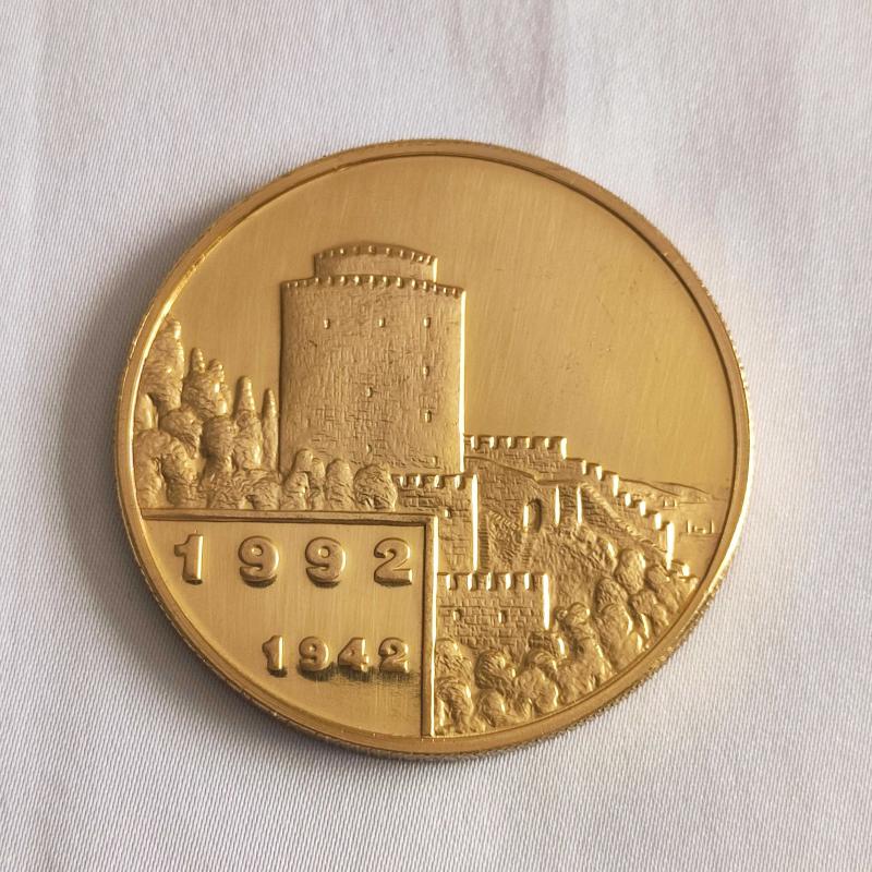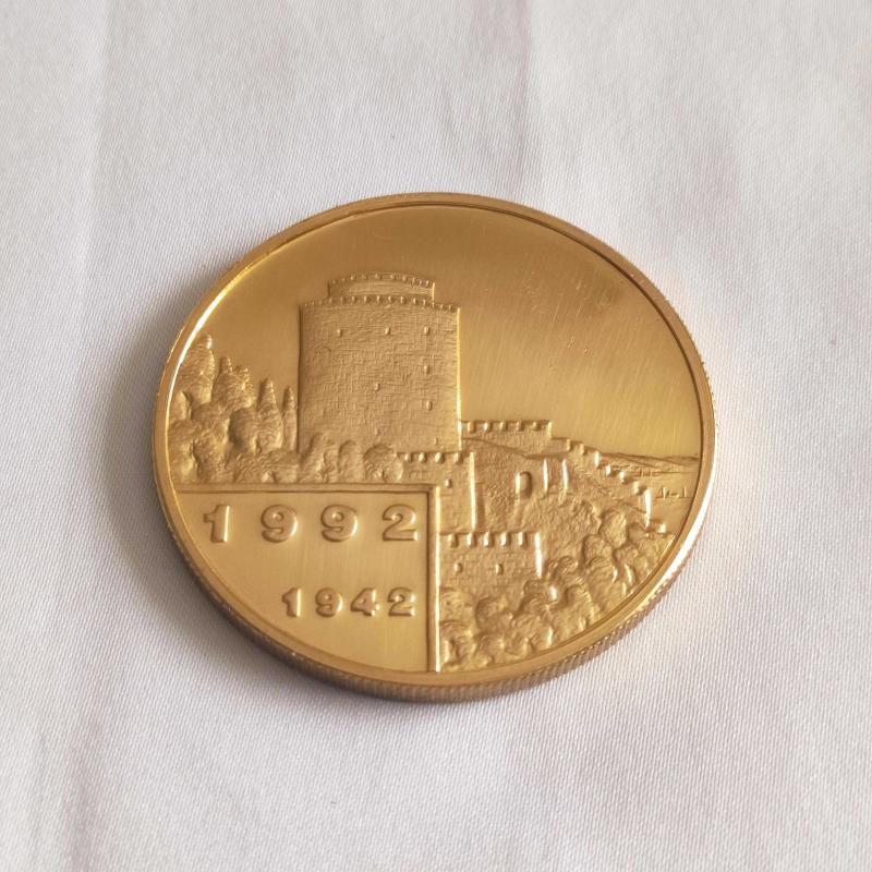 * * ECZACIBAŞI 50'NCİ YIL - ALTIN KAPLAMA HATIRA MADALYON * * - Hatıra anı madalyonu. - Proff baskı özellikli, Altın kaplama. - Numismatik açıdan koleksiyon değeri taşıyan, kataloglarda yerini almış madalyon. - Madalyon Çapı: 5 cm. Ağırlık: 57 gr. - Madalya neredeyse kusursuz kondisyonda, temiz, sağlam koleksiyonluk obje. - Kondisyon detaylı göstermeye çalıştığım fotoğraflardadır. - Kutusu mevcut değildir. * * Ürünlerim hakkında her türlü soru, şüphe ve görüşleriniz için lütfen benimle irtibata geçmekten çekinmeyiniz. * * -