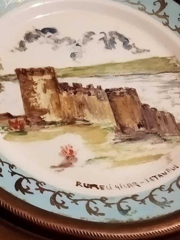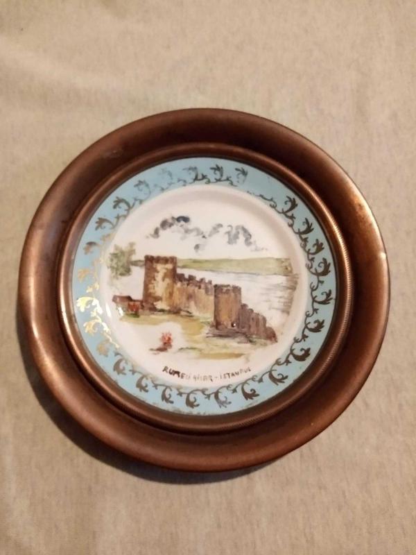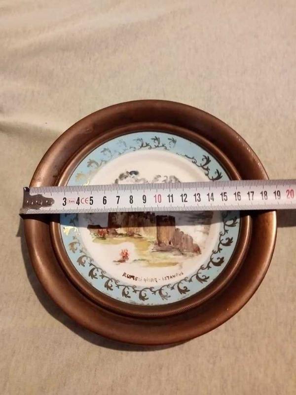 19 cm.çapı olan,yanı ve arkası tamamen bakır koruma içerisinde, eski el boyama Eczacıbaşı duvar ya da masaüstü görsel tabak.. Eskiliğinden dolayı oldukça nadir bir üründür.. Hatası bulunmamaktadır...
