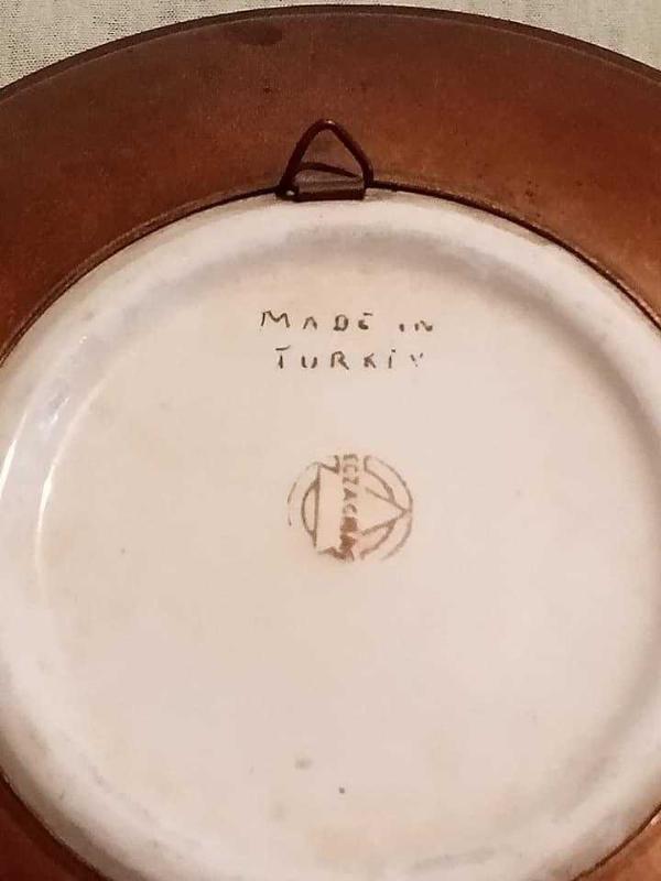 ECZACIBAŞI DAMGALI ESKİ EL YAPIMI BAKIR KORUMALI DUVAR TABAĞI... başlıklı antika/koleksiyon objesi Türkiye menşe’lidir. 1950-1999 arası dönemine aittir.