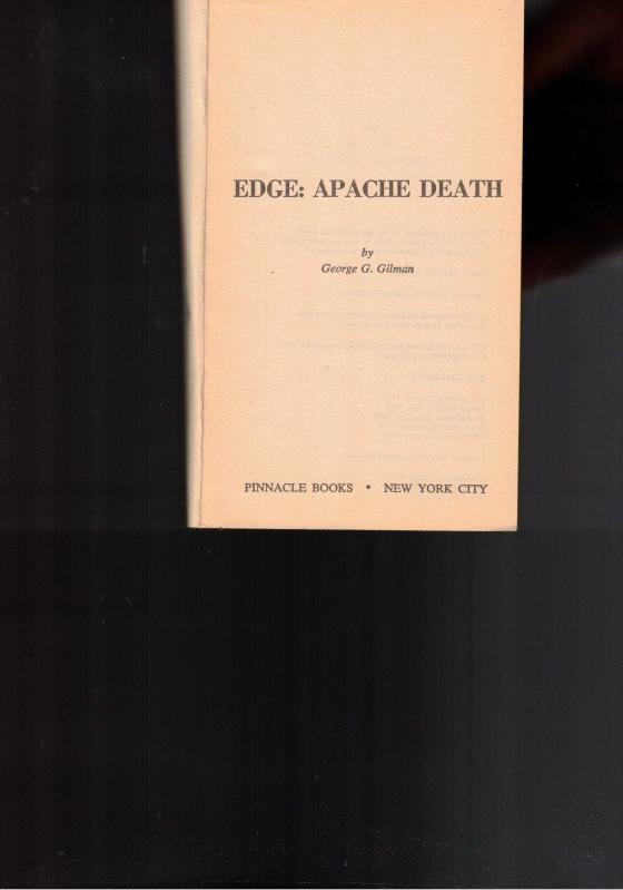 EDGE: APACHE DEATH, GEORGE G. GILMAN tarafından kaleme alınmıştır. Kitap 1975 yılında PINNACLE BOOKS tarafından [NEW YORK] yayınlanmıştır. 154 sayfadır. EDGE: APACHE DEATH adlı eser İngilizce dilindedir.