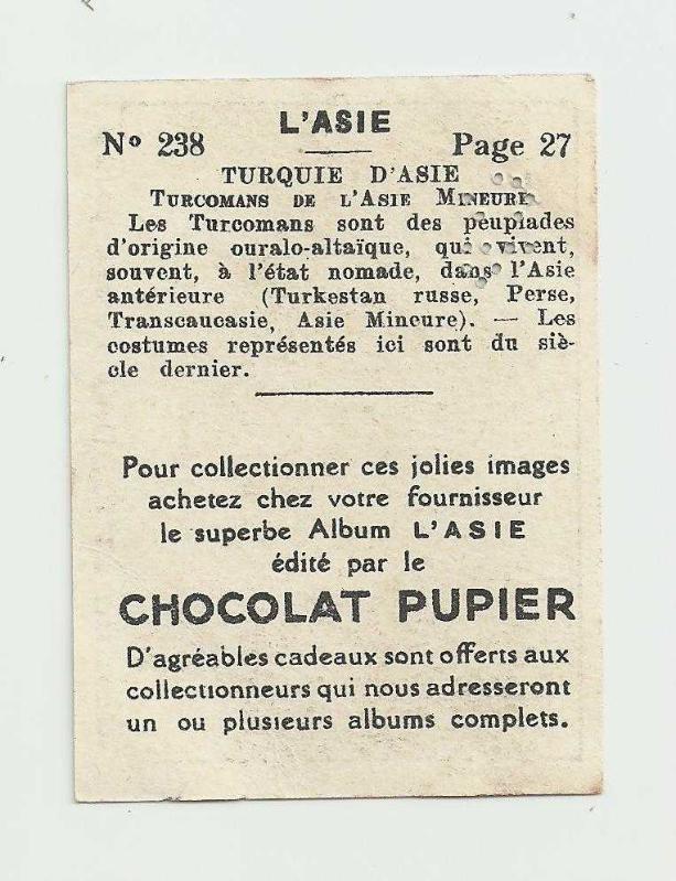 ** EDITE PAR LE CHOCOLAT PUPIER / TÜRK TEMALI ÇİKOLATA KARTI - KÜÇÜK ASYA TÜRKOMANLARI ** 6.9 x 5.2 cm.ebadında,çil durumda,arkasında bilgisi mevcut olan eski dönem Türk temalı çikolata kartıdır...