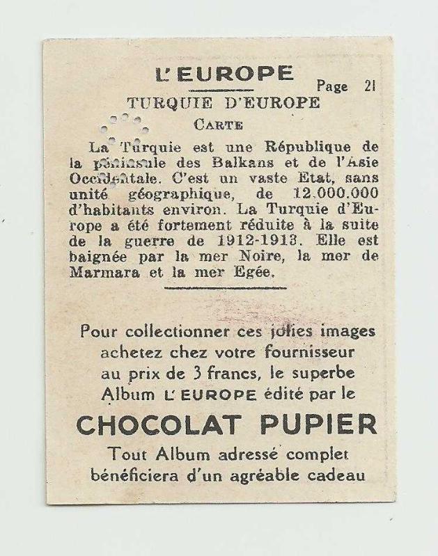 ** EDITE PAR LE CHOCOLAT PUPIER / TÜRK TEMALI ÇİKOLATA KARTI - TÜRKİYE AVRUPA YAKASI HARİTASI ** 6.9 x 5.2 cm.ebadında,çil durumda,arkasında bilgisi mevcut olan eski dönem Türk temalı çikolata kartıdır...