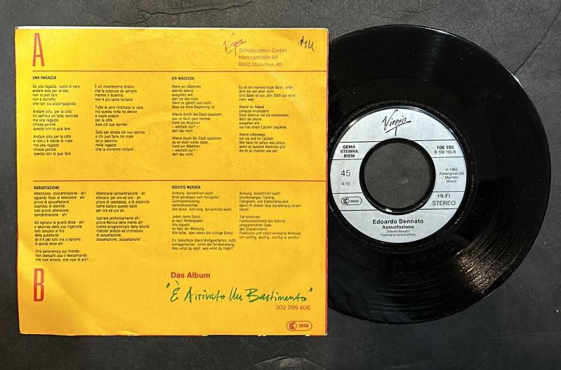 EDOARDO BENNATO * UNA RAGAZZA * ASSUEFAZIONE * 45LİK PLAK, 2 yıl önce satışa sunulmuştur.