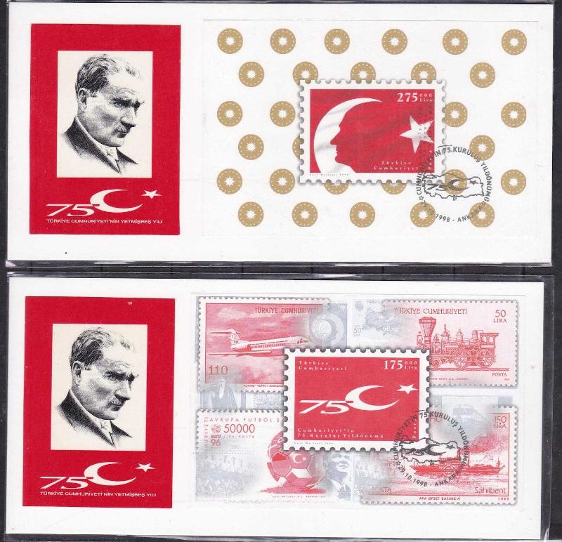 EFM.001 1998 CUMHURİYET'İN 75.KURULUŞ YILDÖNÜMÜ HATIRA BLOKLARI 2 FDC TAKIM HATIRA KARTI ÜZERİNDE, en son 5 ay önce güncellenmiştir.