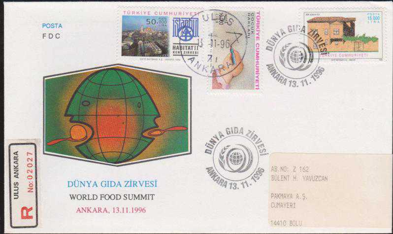 EFM.4264 OD.707 1996 DÜNYA GIDA ZİRVESİ TAAHÜTLÜ POSTADAN GEÇMİŞ VARIŞLI başlıklı ürün, Efemera, Müzik, Sinema > Pullar, Zarflar, Kartlar > İlk Gün Zarfı (FDC) > Yerli FDC kategorisi altında Yeni olarak satılmaktadır.