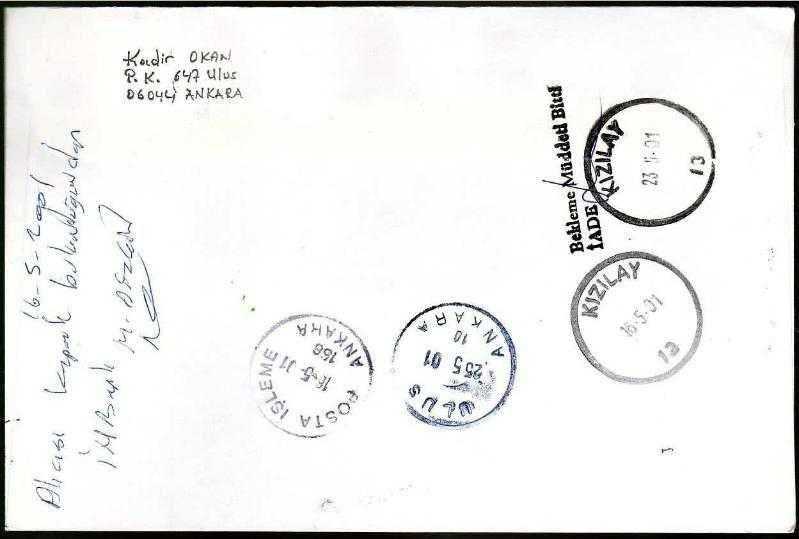 EFM.4675 2001 ALTIN KANATLAR TAAHÜTLÜ VARIŞLI FDC ARKADAKİ DAMGALARA BAKINIZ, en son 1 yıl önce güncellenmiştir.
