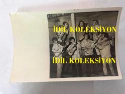 Dönemine ait orijinal basımdır. Çok nadir bir fotoğraftır. Kondisyon fotoğraflarda görüldüğü gibi. Beyaz Kelebekler, Türk pop müzik grubu. Topluluğun aktif müzik yaşantısı 1963'ten 1980'e kadar sürmüştür. Kabataş Erkek Lisesi'nde okuyan 5 genç tarafından kurulmuştur. Turgut Akyüz'ün katılımıyla profesyonel hayata geçip ünlenmeye başlamıştır. Solist olarak ilk Ayşe Sütçü ile çalışan grup Ayşe'nin evlenip müziği bırakmasından sonra yeni solist olarak Azize Gencebay ile yola devam etti. Azize'nin de Orhan Gencebay ile evlenip müziği bırakmasının ardından da grup Ülkü Üst ile anlaştı. Grup 19 Ocak 1970 yılında Adapazarı'na bir konser için giderken trafik kazası geçirir. Bu kazada Behzat Kutlubağ, Altan Eke ve Rıfat Eke'yi kaybeder.[2] Bu olaydan sonra dağılma noktasına gelen grup çevreden gelen ısrarlar üzerine bu kararından döner. İlerleyen yıllarda Turgut Akyüz bir gazinoda Hasan Heybetli'nin kardeşi tarafından vurularak öldürüldü.[ 70'li yılların ünlü gruplarından olan Beyaz Kelebekler bu dönem pek çok Avrupa ülkesinde konser verdi. Grup 1980 İzmir Fuarı sonrasından kariyerini noktalar. Sen Gidince Bak Neler Oldu, Neler Oluyor Hayatta, Bütün Aşklar Tatlı Başlar, Ateş Böceği grubun önemli çalışmalarıdır.
