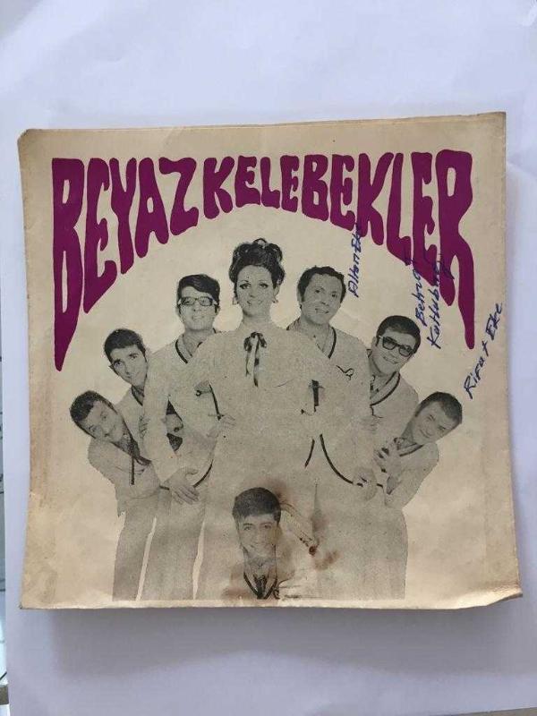 Dönemine ait orijinal basımdır. Kondisyon fotoğraflarda görüldüğü gibi. Beyaz Kelebekler, Türk pop müzik grubu. Topluluğun aktif müzik yaşantısı 1963'ten 1980'e kadar sürmüştür. Kabataş Erkek Lisesi'nde okuyan 5 genç tarafından kurulmuştur. Turgut Akyüz'ün katılımıyla profesyonel hayata geçip ünlenmeye başlamıştır. Solist olarak ilk Ayşe Sütçü ile çalışan grup Ayşe'nin evlenip müziği bırakmasından sonra yeni solist olarak Azize Gencebay ile yola devam etti. Azize'nin de Orhan Gencebay ile evlenip müziği bırakmasının ardından da grup Ülkü Üst ile anlaştı. Grup 19 Ocak 1970 yılında Adapazarı'na bir konser için giderken trafik kazası geçirir. Bu kazada Behzat Kutlubağ, Altan Eke ve Rıfat Eke'yi kaybeder.[2] Bu olaydan sonra dağılma noktasına gelen grup çevreden gelen ısrarlar üzerine bu kararından döner. İlerleyen yıllarda Turgut Akyüz bir gazinoda Hasan Heybetli'nin kardeşi tarafından vurularak öldürüldü.[ 70'li yılların ünlü gruplarından olan Beyaz Kelebekler bu dönem pek çok Avrupa ülkesinde konser verdi. Grup 1980 İzmir Fuarı sonrasından kariyerini noktalar. Sen Gidince Bak Neler Oldu, Neler Oluyor Hayatta, Bütün Aşklar Tatlı Başlar, Ateş Böceği grubun önemli çalışmalarıdır.
