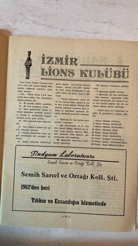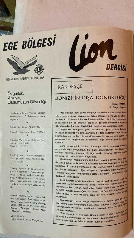 EGE BÖLGESİ LİON DERGİSİ - NİSAN 1957 YIL: 1 SAYI: 3 ENVER ŞENERDEM - TURAN TAMAR - SAKIP SÜMER - ÖNAL BAŞAK - TAMER KEMAHLIOĞLU - SELAMİ AKKUM - EMİN KUNGUR - BİHTER PEKİN - FAİKA KESTELLİ - RENE MARGONATO - MÜNİP TARHAN İNSANLARIN BİRBİRİNE İHTİYACI VAR - KARDEŞÇE LİONİZMİN DIŞA DÖNÜKLÜĞÜ - LİONİZM ÜZERİNE - TAM TAKIM EKSİKSİZ 34 SAYFA, DR. ENVER ŞENERDEM tarafından kaleme alınmıştır. Eser TURAN TAMAR editörlüğünde hazırlanmıştır. EGE BÖLGESİ LİON DERGİSİ - NİSAN 1957 YIL: 1 SAYI: 3 ENVER ŞENERDEM - TURAN TAMAR - SAKIP SÜMER - ÖNAL BAŞAK - TAMER KEMAHLIOĞLU - SELAMİ AKKUM - EMİN KUNGUR - BİHTER PEKİN - FAİKA KESTELLİ - RENE MARGONATO - MÜNİP TARHAN İNSANLARIN BİRBİRİNE İHTİYACI VAR - KARDEŞÇE LİONİZMİN DIŞA DÖNÜKLÜĞÜ - LİONİZM ÜZERİNE - TAM TAKIM EKSİKSİZ 34 SAYFA adlı eser Türkçe dilindedir.