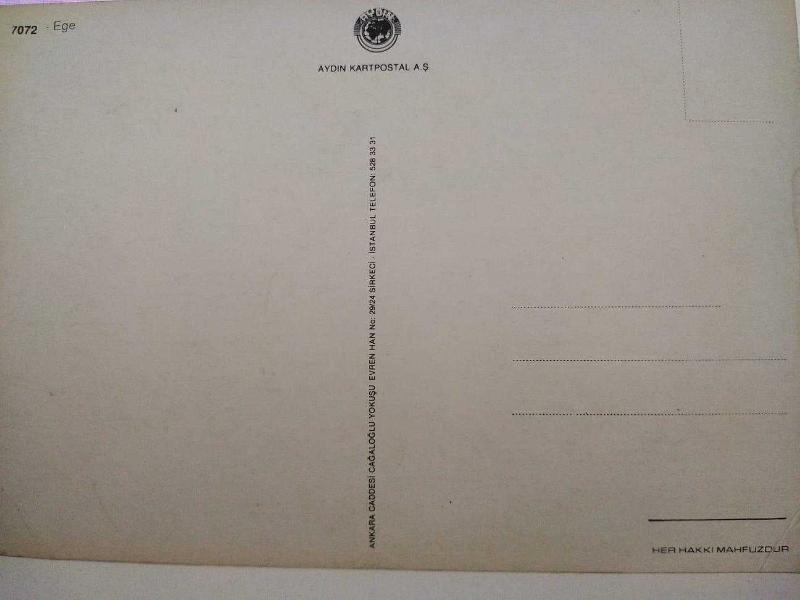 EGE KARTPOSTALI,ARKASINA YAZILMAMIŞ,RENKLİ, 11,5 X 16 CM EBADINDA, 1 yıl önce satışa sunulmuştur.