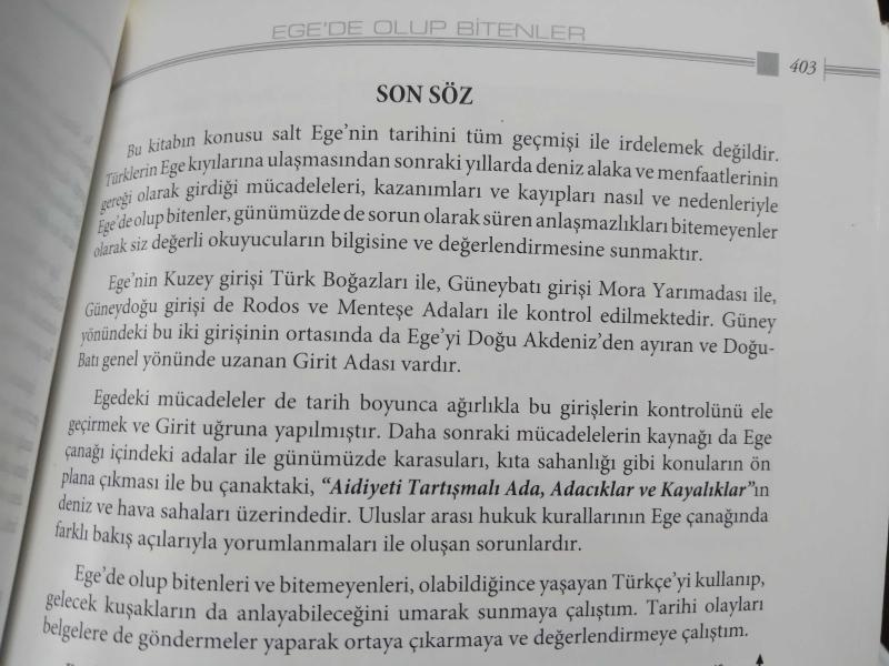 arşivden yeni, imzalı, ciltli, kuşe kağıt Ege Adaları ve Ege’de Osmanlı Egemenliğinin Kurulması- Akdeniz Egemenliği Uğruna Mücadele- 1.Mora İsyanı ve Çeşme Deniz Savaşı- Osmanlı Ordusunda Yenileştirme Hareketleri ve Deniz Harp Okulunun Kurulması-(..)-Fransız İhtilali,Napolyon’un Mısır Seferi Öncesi ve Sonrası- 1806/1812 Osmanlı-Rus Savaşı ve Bir İngiliz Filosunun Zor Kullanarak Çanakkale Boğazı’ndan Geçmesi- Mora’da 3.İsyan Ortamının Oluşturulması-(..)-Yeniçeri Ocağının Kaldırılması- (..)-1912/1913 Balkan Savaşı-- Girit’in Kaybı- Ege Adalarının Yunanistan’a verilmesi- 2.Dünya Savaşında Balkanlar,Ege Denizi ve Türkiye- Türkiye Üzerinde Sovyet Tehditleri- Rodos ve Menteşe Adalarının Yunanistana Verilmesi- Ege’de Olup, Bit(E)meyenler: Kıta Sahanlığı, Karasuları ve Ekonomik Bölge, Hava Sahası, Adaların Silahsızlandırılması