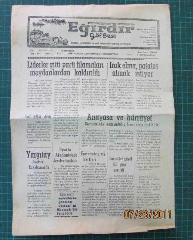 EĞİRDİR GÖL SESİ GAZETESİ 28 MAYIS 1977