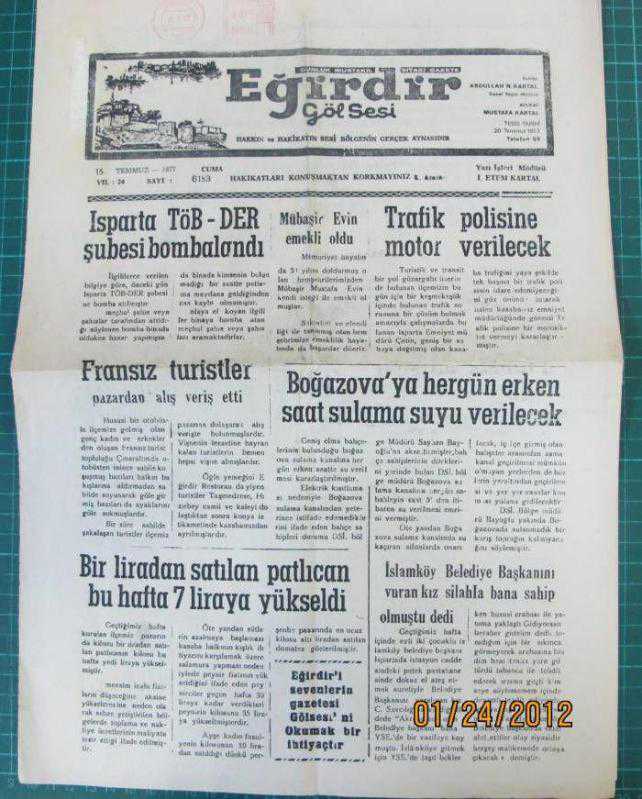 EĞRİDİR GÖL SESİ gazetesi 15 temmuz 1977, en son 7 ay önce güncellenmiştir.