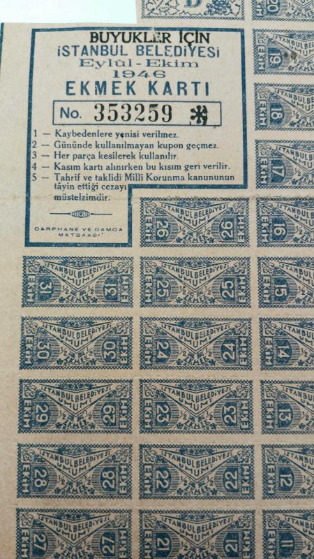 EKMEK KARNESİ.1946 YILI İSTANBUL BELEDİYESİ EKMEK KARTI OBJENİN DURUMU RESİMLERDE BİRE BİR GÖRÜLDÜĞÜ GİBİDİR... BU OBJEYİ-ÜRÜNÜ HİÇ TEREDDÜT ETMEDEN GÖNÜL RAHATLIĞI İLE ALABİLİRSİNİZ ....ALMADAN ÖNCE MESAJ ATIP BİLGİ ALABİLİRSİNİZ,SORULARINIZA CEVAP VERMEK BENİ MUTLU EDECEKTİR. BEĞENMEDİĞİNİZ ÜRÜNÜ BANA HER ZAMAN(1hafta içinde kırılmadıysa ve zarar görmediyse tabi takdir edersiniz ki:))) GERİ GÖNDEREBİLİRSİNİZ SORGUSUZ SUALSİZ GERİ ALIRIM...(Burada amaç aldığınızdan keyif duyuyor ve zevk alıyor olmanız)...VE BANA SONUNA KADAR ÜRÜNLER KONUSUNDA GÜVENEBİLİRSİNİZ....BAKTIĞINIZ ÜRÜNÜN YANINDAKİ BÖLÜMDE DÜKKANIMIZIN İSMİ OLAN ''SARAYLI ANTİKA VE KOLEKSİYON'' YAZISI ÜZERİNE TIKLARSANIZ DÜKKANIMDAKİ TÜM ÜRÜNLERİMİ GÖREBİLİRSİNİZ...PORTFÖYÜMDE İLGİNİZİ ÇEKEBİLECEK ENDER VE İLGİNÇ OBJE-ÜRÜNLER BULABİLİRSİNİZ.... HANIMEFENDİLER VE BEYEFENDİLER SİZLERİN ZEVKİNE VE BEĞENİNİZE BU OBJEYİ-ÜRÜNÜ SAYGILARIMLA SUNARIM......