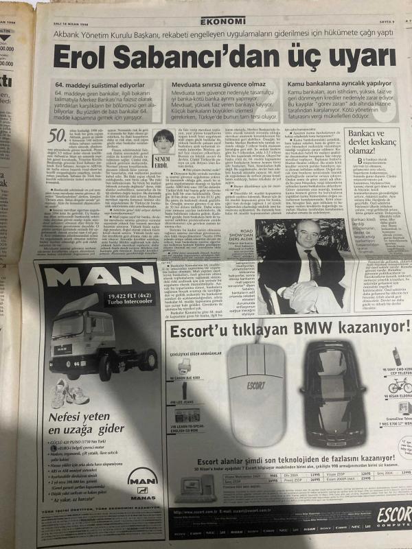 EKONOMİ GAZETESİ DOĞUM GÜNÜ HEDİYESİ - 14 NİSAN 1998 -Özdemir Sabancı - Demir Sabancı - Necati Doğru - Erol Sabancı - Senem Erdil - Nezih Erdem - Okan Müderrisoğlu - Ali Rıza Kardüz - Hz. İsa - Zülfü Livaneli - Cem Yılmaz - Helen Hunt - Greg Kinnear - Leonardo DiCaprio - Kate Winslet - Jack Nicholson - Sharon Stone - Dustin Hoffman - Samuel L. Jackson - Robin Shou - Talisa Soto - James Remar - Sandra Hess - Brian Thompson - Cem Özer - Demet Akbağ - Yılmaz Erdoğan - Sadri Alışık - Sevinç Erbulak - Hümeyra - Ayşe Erbulak - Pelin Batu - Rüştü Asyalı - Cengiz Küçükayvaz - Ferhan Şensoy - Ali Poyrazoğlu - Haluk Bilginer - Selçuk Yöntem - Işıl Kasapoğlu 27 yaşındaki rekordmenin serveti yarım milyar dolar - Kıbrıslılar Kamer Bey’i niçin tükürükle kovmadılar? - Erol Sabancı’dan üç uyarı - Mührü alan Nezih Erdem 300 bin cep telefonu sattı - IMF ile gerilimsiz buluşma - İthal oto rekora koşuyor - Sadece büyük olmak yetmiyor artık hedef “dev” olmak - Öğrenciye dayağa 2 ay hapis cezası - adlı eser, Kitap > Süreli Yayınlar > Gazeteler > Türkiye > Genel > Günlük kategorisinde İkinci El olarak satıştadır.