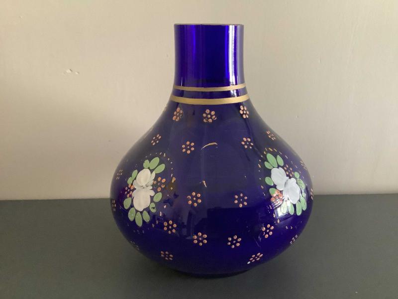 EL BOYAMA ANTİKA KOBALT MAVİ CAM VAZO başlıklı antika/koleksiyon objesi Avrupa menşe’lidir. 1950-1999 arası dönemine aittir.
