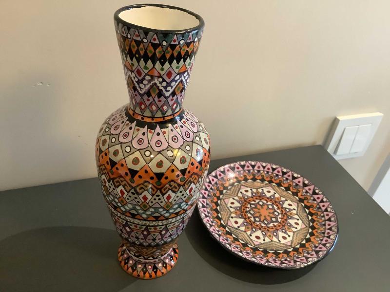 Vazo 23 cm yüksekliğinde, Tabak 15 cm çapında Azerbaycanlı sanatçı işi el boyama (M-3)