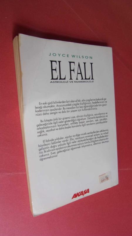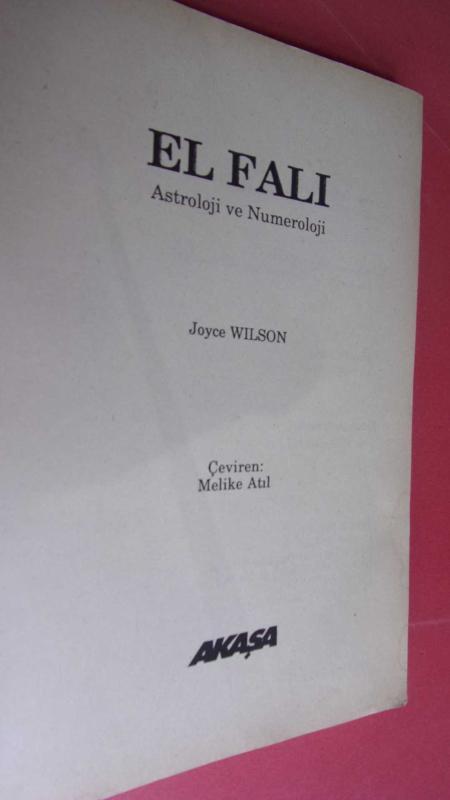 EL FALI ASTROLOJİ VE NUMEROLOJİ, JOYCE WILSON tarafından kaleme alınmıştır. Kitap 1993 yılında AKAŞA YAYINLARI tarafından [isatanbul] yayınlanmıştır. Bu baskının çevirisi Melike ATIL tarafından yapılmıştır. 197 sayfadır. EL FALI ASTROLOJİ VE NUMEROLOJİ adlı eser Türkçe dilindedir.