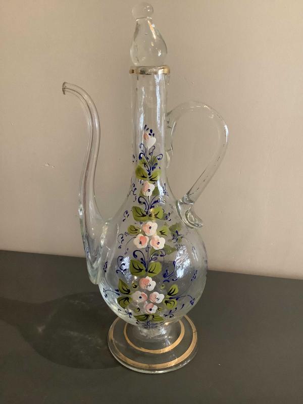 EL İŞİ ÇİÇEK MOTİFLİ CAM İBRİK başlıklı antika/koleksiyon objesinin menşei belirtilmemiştir. 1950-1999 arası dönemine aittir.