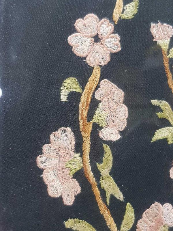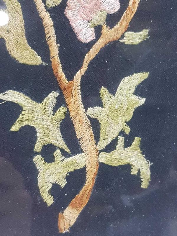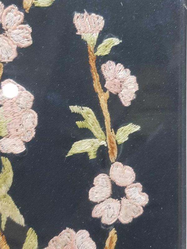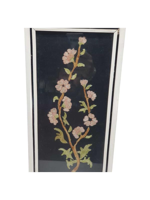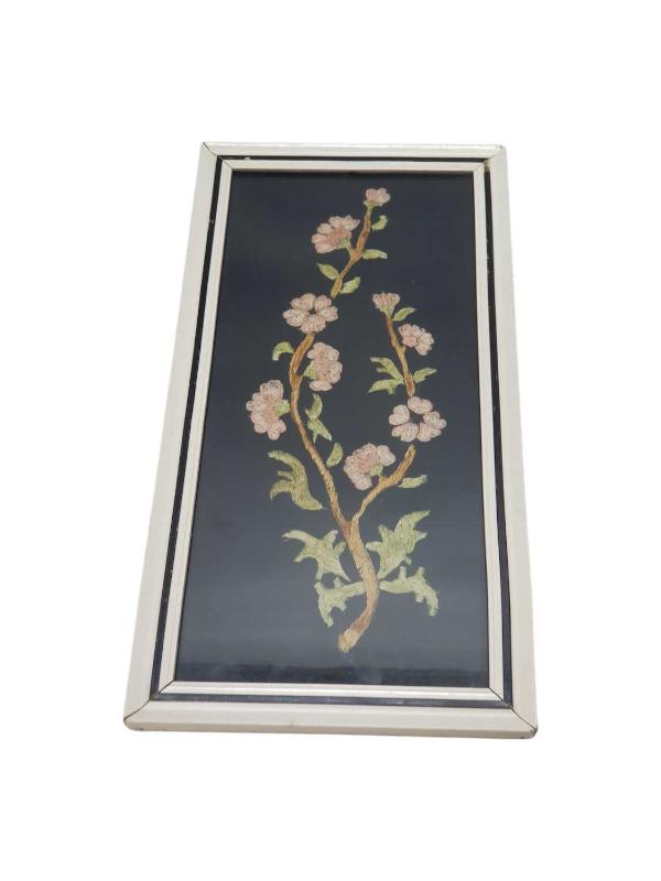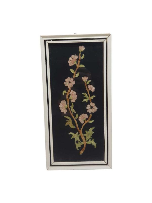 1960-1970'LERDEN KUMAŞ ÜZERİ EL İŞLEME ÇİÇEK RESİMLİ DUVAR PANOSU EBAT: 41,5 X 21,5 CM