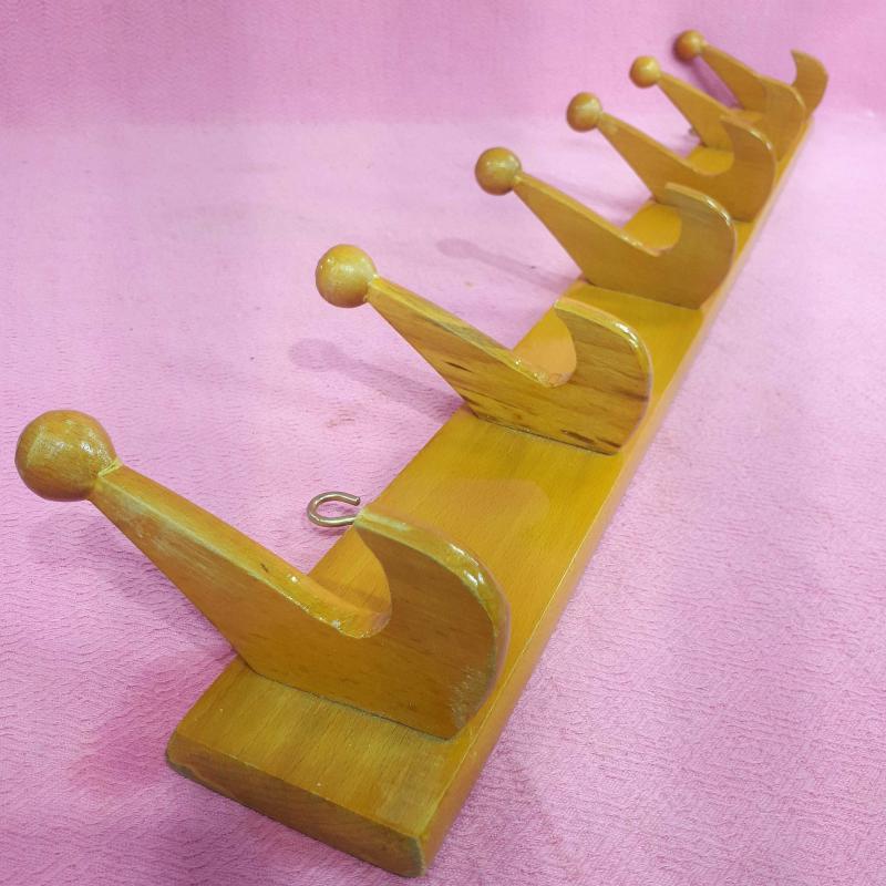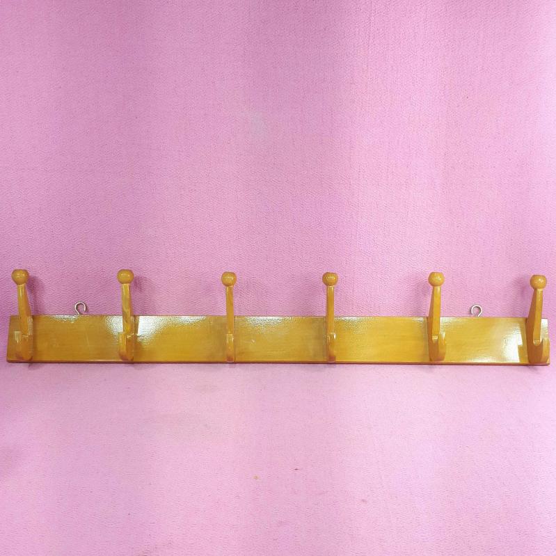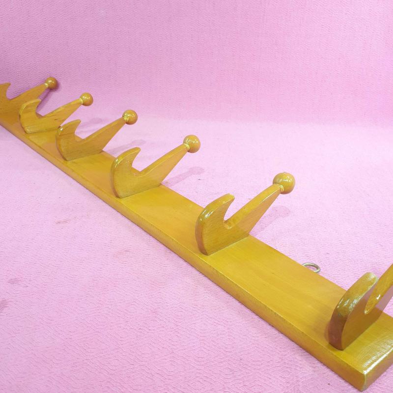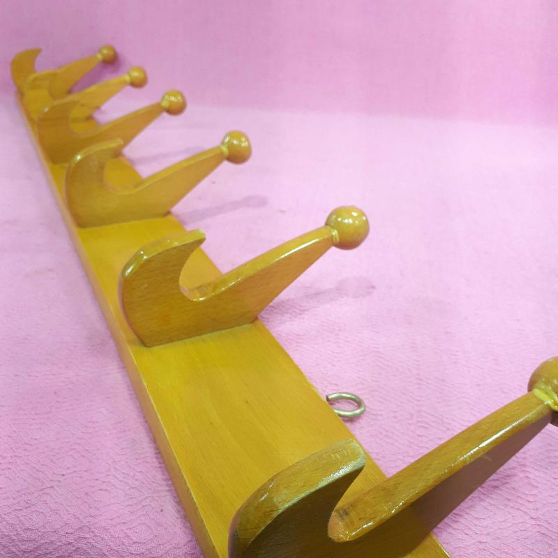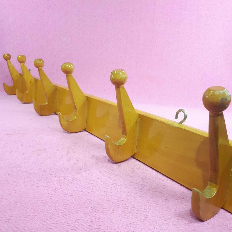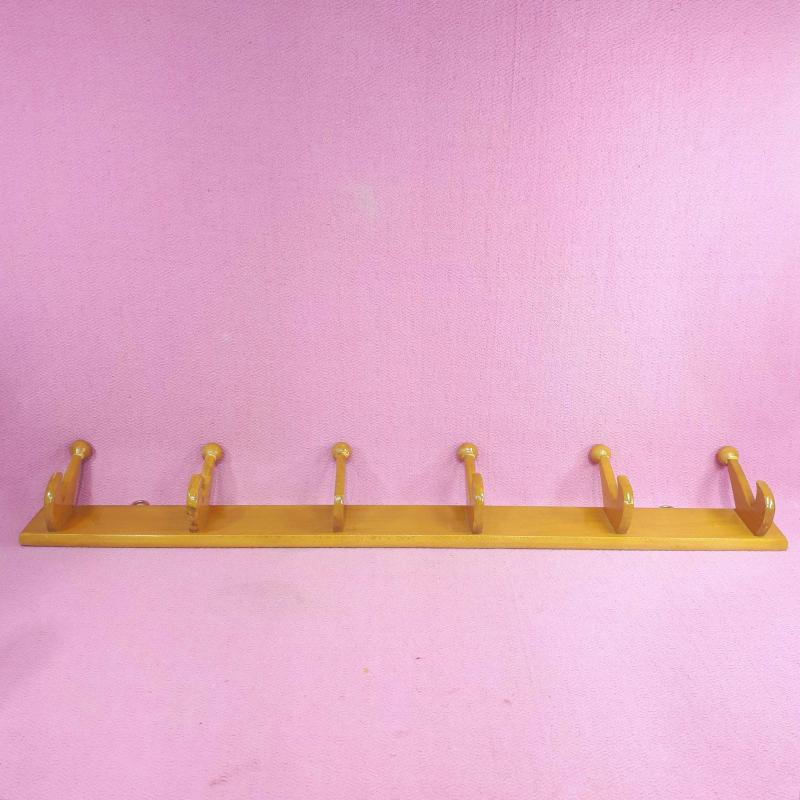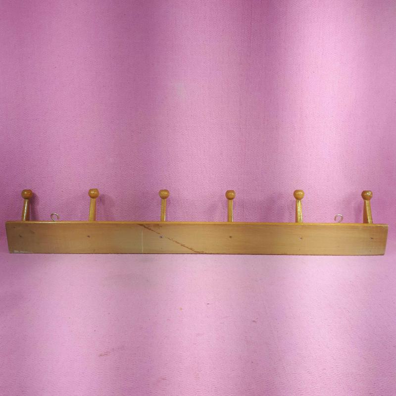 85 x 7,5 cm . MASİF GÜRGEN AHŞAP MALZEMEDEN YAPILMIŞ , BAŞLARI TOPUZLU 6 KANCALI DUVAR ASKISI . KUSURSUZ .