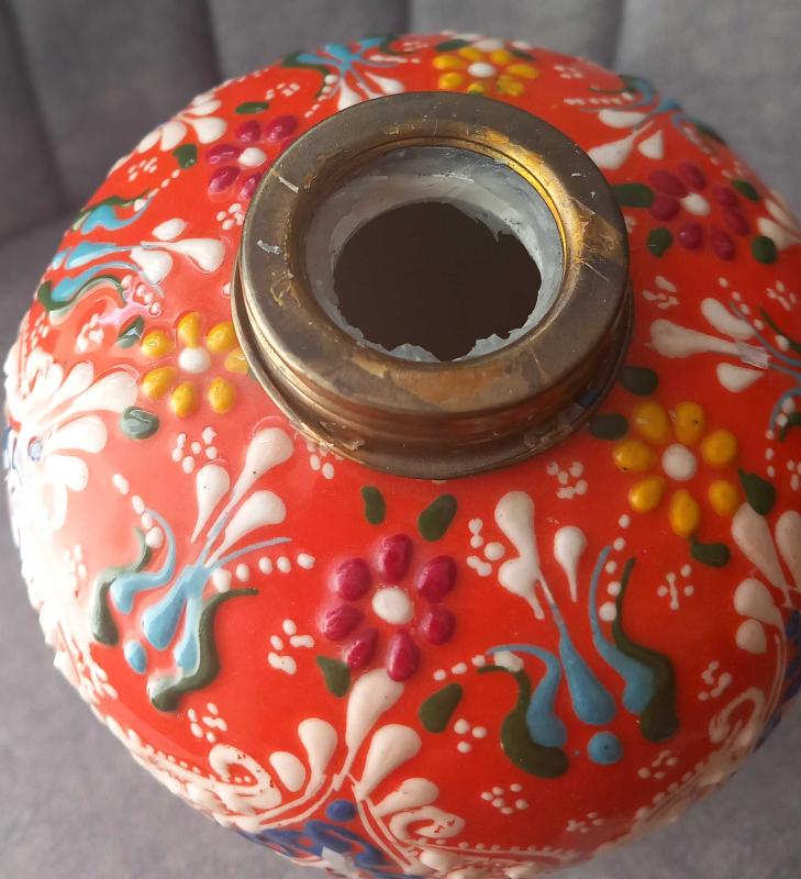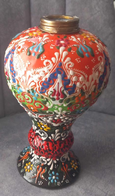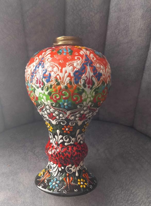 EL YAPIMI SERAMİK SÜS GAZ LAMBASI. KONDİSYON YÜKSEK. başlıklı antika/koleksiyon objesi Türkiye menşe’lidir. 2000 ve sonrası dönemine aittir.