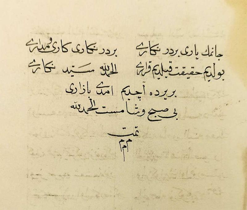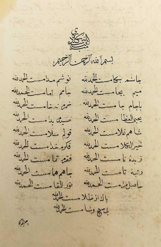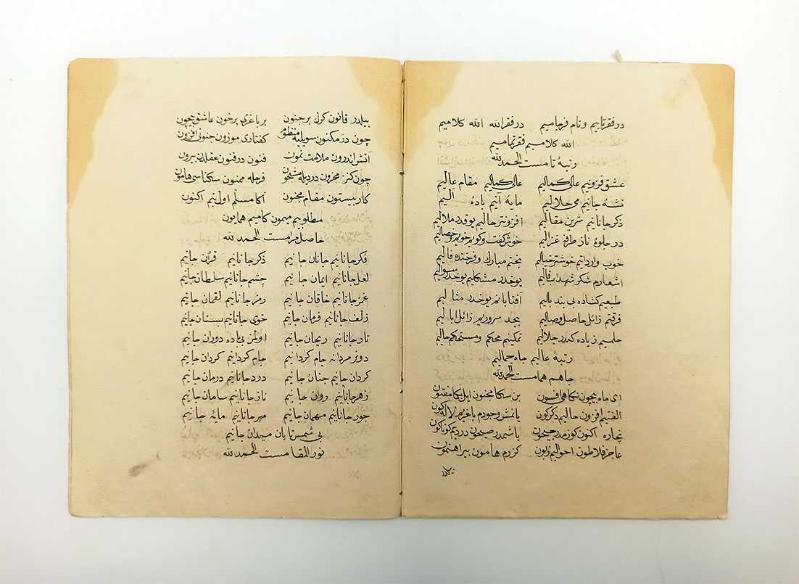 Özgün kağıt kapağında, sayfa kenarları lekeli, haricen temiz, 22 x 16 cm, Osmanlıca (yer yer Azeri Türkçesi), [12] sayfa. 19. yüzyılda Azerbaycan'da doğan ve yaşamının ilerleyen yıllarında İstanbul'a gelen Nakşibendî şeyhi ve şair Nigârî'nin çoğunlukla Azerî Türkçesi özellikleri gösteren divanının içinde, şairin ölümünden sonra bulunup da Tiflis baskısı divanının içinde ilk kez 1910'da matbû olarak yayınlanmış, 210 beyitlik mesnevi tarzında bir manzume "Menâkıb-ı Seyyid Nigârî" başlıklı kısmı içeren geç 19. / erken 20. yüzyıl el yazması. "Seyyid Nigârî’nin manevi hayatını anlattığı bu eseri 210 beyitlik mesnevi nazım şekliyle yazılmış manzum bir eserdir." (YÜTEİS online). Kullanılan kağıt 19. yüzyıl kağıdı olmasına karşın, eserin Tiflis nüshasında yayınlanmadan önce mi sonra mı istinsah edilmiş olduğuna dair bir bilgi mevcut değildir. Döneminin kenarları yaldızlı kağıdına güzel bir nesih hatla yazılmış yazmada sadece siyah mürekkep kullanılmış olup besmeleden önceki başlık estetik bir biçimde istiflenmiştir. İlk ve son sayfası hariç her sayfada 18 satırlık yazı mevcuttur. "Mir Hamza Nigârî Efendi, 1805 yılında Azerbaycan’ın Karabag bölgesinin Zengezur ilçesinin Cicimli köyünde dünyaya gelmiştir. Naksibendî (Halidiyye) şeyhlerindendir. Seki ve Samahı gibi şehirlerde iyi bir tahsil almıs, Arapça ve Farsça ögrenmiştir. Genç yaslarında Türkiye'ye giderek orada tahsilini tekâmül ettirmiştir. Harput’ta Mevlâna Halit’in yanında tahsilini ve tarikat eğitimini geliştirmek istemisse de seyhin ölmesi üzerine Sivas'a ve oradan Azerbycan'ın Kazak şehrine dönmüs ve Hanlıklar kasabasına yerlesmiştir. Burada bir dergâh olusturarak, bir mürsid gibi faaliyet göstermiştir. Ocağına çok mürid toplanmıştır. Sohbetlerinde ve zikir halkalarında kendi yazdığı gazel, kaside ve muhammeslerinden de faydalanmıştır. Sonra tekrar Türkiye’ye gelerek Amasya’daki Şeyh Şamil Şirvanî’ye intisap etmiştir. Mürşidinin izni ile önce Konya Mevlâna Türbesi’nde sonradan “Ravza-i Mutahhara”da “erbain çıkartmıstır”. Hac farizasını ifa edip dönerken Sam ve Kudüs’ü de ziyaret ederek Amasya’ya dönmüştür. Ziyaretinden bir yıl sonra hilâfet alarak Berde ve Bergüsâd’a dönmüştür. XIX. yüzyılın ortalarında Kafkasya ve Doğu Anadolu’da Rus emperyalizmine karsı çok ciddî mücadelesiyle ün yapmıs; Kırım Harbi sırasında müritleri ile birlikte Kars’a gelerek Osmanlı Ordusu’na katılarak Ruslar’a karsı savaşmıstır. Daha sonra Erzurum’a geçmis üç yıl burada kalmıs buradan İstanbul’a gitmiştir. Orada padişah ile görüştügü söylenmektedir. Esini ve oglu Siraceddin’i Karabag’dan getirterek Amasya’ya yerleşmiştir. Amasya’da şöhreti artınca kendisinden korkulmus ve baska bir yere yerleşmesi istenmiştir. O da bunun üzerine Harput’a göçmüstür. 1886 yılında burada ölmüştür. Cenazesi Amasya’ya getirilerek Sirvanlılar Camiî’nin yanına gömülmüştür." (Vikipedi). -- Türk edebiyatı Azeri Türkçesi Kafkasya şairleri Edebiyat Şiir El yazması Koleksiyon İstinsah Müstensih Hat Hattat Menâkıbnâme