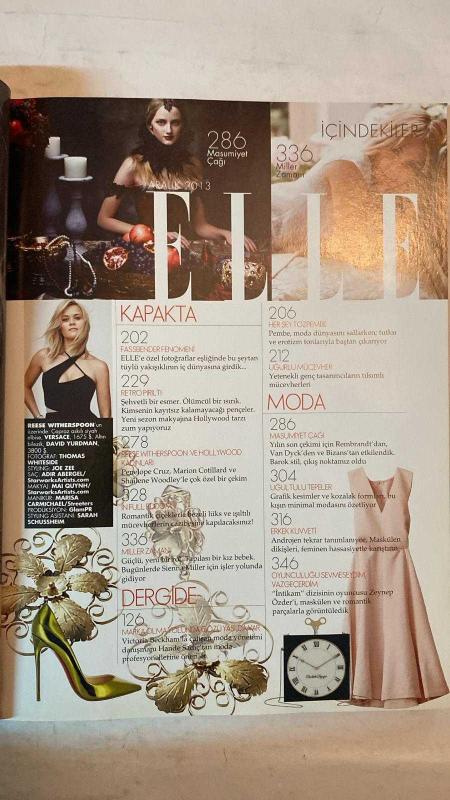 ELLE DERGİSİ - ARALIK 2013 SAYI: 9 REESE WITHERSPOON - SIENNA MILLER - MICHAEL FASSBENDER - MARC JACOBS - HENRY HOLLAND - PENELOPE CRUZ - MARION COTILLARD - SHAILENE WOODLEY - VICTORIA BECKHAM - HANDE SADİÇ - ZEYNEP ÖZDER - JOE ZEE - ADIR ABERGEL - MAI QUỲNH - MARISA CARMICHAEL - SARAH SCHUSSHEIM - THOMAS WHITESIDE 525+ HEDİYE SEÇENEĞİ - MÜCEVHER REHBERİ - RETRO YILBAŞI HOLLYWOOD MAKYAJI - ELLE STYLE AWARDS - HOLLYWOOD’UN GÜÇLÜ KADINLARI - HAYAT GURMESİ ÖNERİLERİ - FASSBENDER FENOMENİ - RETRO PIRILTI - MASUMİYET ÇAĞI - UĞULTULU TEPELER - ERKEK KUVVETİ - HER ŞEY TOZPEMBE - UĞURLU MÜCEVHERLER - INFULL DOOM MÜCEVHERLER - MILLER ZAMANI - PARTİ ZAMANI - ÖĞLE YEMEĞİ YAŞLANDIRIYOR MU? - İLHAM VEREN HAYALLER - ALIŞVERİŞ - AJANDA - ASTRO - SON BAKIŞ - BANGKOK DOSYASI – TAM TAKIM EKSİKSİZ 386 SAYFA, MEHMET YILMAZ tarafından kaleme alınmıştır. Eser IŞIN GÖRMÜŞ editörlüğünde hazırlanmıştır. ELLE DERGİSİ - ARALIK 2013 SAYI: 9 REESE WITHERSPOON - SIENNA MILLER - MICHAEL FASSBENDER - MARC JACOBS - HENRY HOLLAND - PENELOPE CRUZ - MARION COTILLARD - SHAILENE WOODLEY - VICTORIA BECKHAM - HANDE SADİÇ - ZEYNEP ÖZDER - JOE ZEE - ADIR ABERGEL - MAI QUỲNH - MARISA CARMICHAEL - SARAH SCHUSSHEIM - THOMAS WHITESIDE 525+ HEDİYE SEÇENEĞİ - MÜCEVHER REHBERİ - RETRO YILBAŞI HOLLYWOOD MAKYAJI - ELLE STYLE AWARDS - HOLLYWOOD’UN GÜÇLÜ KADINLARI - HAYAT GURMESİ ÖNERİLERİ - FASSBENDER FENOMENİ - RETRO PIRILTI - MASUMİYET ÇAĞI - UĞULTULU TEPELER - ERKEK KUVVETİ - HER ŞEY TOZPEMBE - UĞURLU MÜCEVHERLER - INFULL DOOM MÜCEVHERLER - MILLER ZAMANI - PARTİ ZAMANI - ÖĞLE YEMEĞİ YAŞLANDIRIYOR MU? - İLHAM VEREN HAYALLER - ALIŞVERİŞ - AJANDA - ASTRO - SON BAKIŞ - BANGKOK DOSYASI – TAM TAKIM EKSİKSİZ 386 SAYFA adlı eser Türkçe dilindedir.