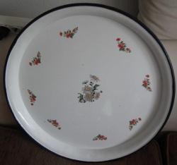 EMAYE TEPSİ BÜYÜK BOY SİNİ PAPATYA ÇİÇEKLİ ÇAP 54 CM DERİNLİK 4.5 CM