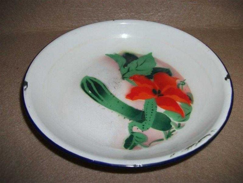 EMAYE - YAYVAN ÇANAK - ÇAPI 21 CM başlıklı antika/koleksiyon objesinin menşei belirtilmemiştir. 1940 sonrası dönemine aittir.