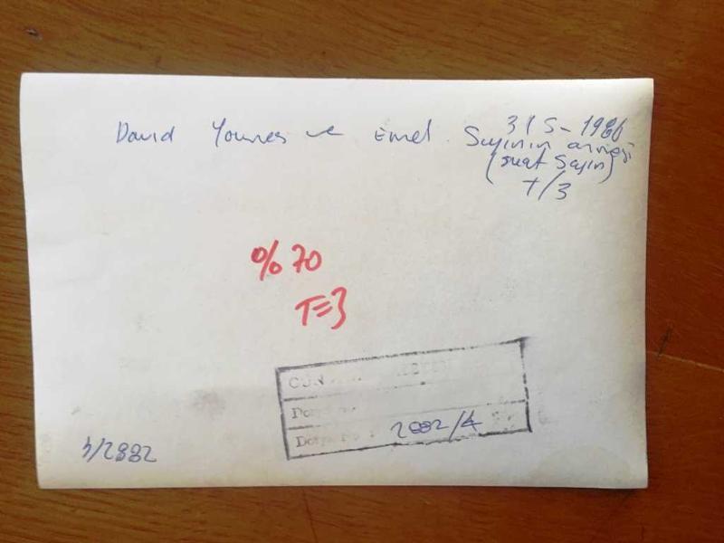 EMEL SAYIN'IN ORİJİNAL 2'Lİ FOTOĞRAF SETİ, 18 x 12 cm EBADINDA - SİYAH & BEYAZ - EMEL SAYIN'IN DAVID YOUNNES İLE TATİL YAPTIKLARI ANLARDA BİRLİKTE ÇEKİLMİŞ BİR FOTOĞRAFLARI ve EMEL SAYIN'IN ANNESİ SUAT SAYIN'IN DAVID İLE YANYANA OTURDUKLARI BİR KARE, 31 MAYIS 1986, 9 ay önce satışa sunulmuştur.
