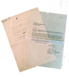 Emin Onat tarafından imzalanmış orijinal daktilo mektubu (TLS), Columbia Üniversitesi Mimarlık Bölümü Dekanı'na gönderilmiş olup, Onat’ın el yazısı düzeltmelerini içeren ilk taslak da mektuba eklenmiştir. 30x20 cm. İnce kâğıda yazılmış. 1+1 sayfa. Tamamı İngilizce metin (aşağıda Türkçe çevirisi verilmiştir). Mektup, Onat tarafından "O. Prof. Architect, Dean of the Architectural Faculty of the Technical University, Ist., Turkey" unvanı ile imzalanmıştır. 20 satırlık metin şu şekildedir: "Bu mektubu taşıyan, Mimarlık Fakültemizde Yapı Bilgisi Profesörü olan Mimar Dr. Mukbil A. Gökdoğan’ı takdim etmeme izin verin. Fakültemiz konseyi tarafından, Birleşmiş Milletler binalarında çalışmak ve ülkenizde bulunduğu süre boyunca konut sorunlarını ve prefabrikasyon yöntemlerini incelemek üzere seçilmiştir. İnşaat ve mimarlık eğitimi veren enstitülerinizi ziyaret etmek de Dr. Gökdoğan için büyük ilgi konusu olacaktır. Profesör Gökdoğan’a sunacağınız değerli yardımlar ve vereceğiniz öneriler için şimdiden teşekkür ederim. Lütfen bu üniversitedeki meslektaşlarının içten selamlarını öğretim kadronuza iletiniz. En içten saygılarımla. Samimiyetle sizin..." Emin Onat, Türk mimar ve eski İstanbul Teknik Üniversitesi rektörüdür. 1908’de İstanbul’da doğdu. 1926’da İstanbul Teknik Üniversitesi’ne girdi. Ardından Zürih Teknik Üniversitesi’ne gönderildi. Onat, Mustafa Kemal Atatürk’ün anıt mezarı olan Anıtkabir’in mimarlarından biridir. Mimari tarzı ETH’de şekillenmiştir. Onat, deney yapmayı, yorumlamayı ve modernizmi araştırmayı, dönemin önde gelen ve deneyimli mimarlarından biri olan hocası Otto Rudolf Salvisberg’den öğrenmiştir. Anıtkabir’in gölgesinde kalmasına rağmen, Onat kendine özgü bir mimari üsluba sahiptir. Onat’ın mimari yeteneği, daha sonra zamanının en iyi mimarlarından biri haline gelen Otto Rudolf Salvisberg’in öğrencisi olduğu Zürih Teknik Üniversitesi’nde gelişmiştir. Onat, eğitimini Zürih’te tamamladıktan sonra 1934’te Türkiye’ye döndü. Bir yıl içinde Mühendislik Okulu’nun Mimarlık Bölümü'nde yardımcı doçent oldu. Onat, geleneksel yöntemlere meydan okuyan yeni öğretim yöntemleri nedeniyle fakültedeki diğer üyelerle zorlayıcı ilişkiler yaşadığı birkaç yıl boyunca bu görevde kaldı. 1944 yılında, yeni kurulan İstanbul Teknik Üniversitesi Mimarlık Fakültesi’nin ilk dekanı oldu. Anıtkabir’in tasarımı, antik dönem anıt mezarlarına atıfta bulunduğu için büyük tartışmalara neden olmuştur. Anıtkabir’in en önemli ve belirgin özelliği, Rasattepe’nin topografyasına uyumlu olmasıdır. Yatay bir siluete sahiptir. İki dikey ekseni vardır ve dört yönden şehre açılmaktadır. Şehirle kurduğu bu bağ, onu yere özgü benzersiz bir tasarım hâline getirirken, anıtsal görünümü onu şehirden ayırmaktadır. Tasarımın anıtsallaştırılması, onu kavramsal bir nesne hâline getirir. Anıtkabir, sembolizmini süslemelerinde dahi görselleştirmektedir.