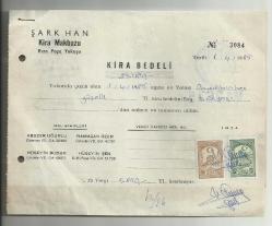 ** EMİNÖNÜ ŞARK HAN KİRA MAKBUZU VE ODABAŞI MAKBUZU ** Biri kira makbuzu diğeri odabaşı makbuzu olmak üzere iki adet sayfadan oluşan lottur.. Damga pulları ve imzaları tamdır...