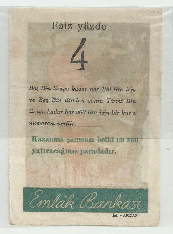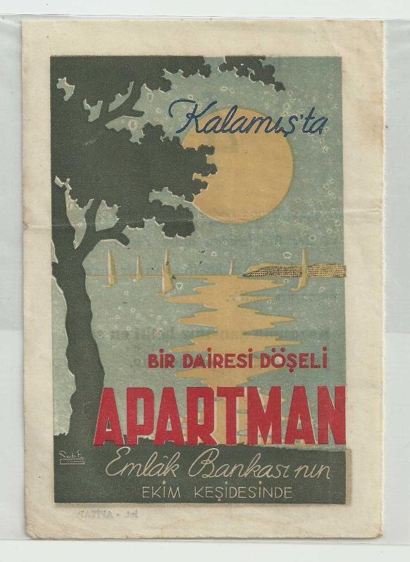 ** EMLAK BANKASI / KALAMIŞ'TA BİR DAİRESİ DÖŞELİ APARTMAN İKRAMİYE İLANI ** 13 x 9 cm.boyutunda,gayet temiz durumda,önlü arkalı baskılı,eski bir Emlak Bankası ilanıdır...