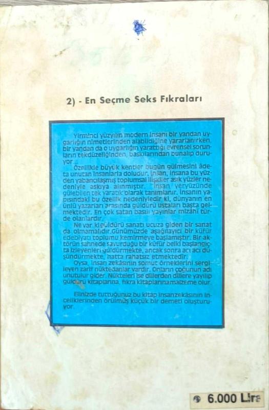 EN GÜZEL SEÇME SEKS FIKRALARI adlı eser, Kitap > Edebiyat, Kurgu > Mizah > Türk Edebiyatı kategorisinde İkinci El olarak satıştadır.