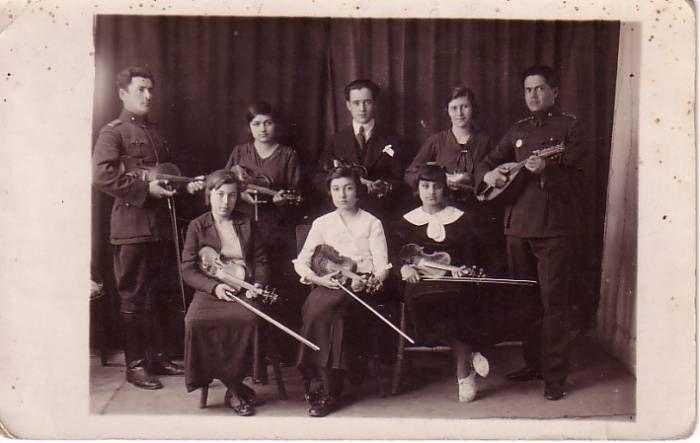 ** 1944 ORKESTRA TAKIMIMIZ ** "1934 senesi kurban bayramında orkestra takımımız" olarak yazılı... Tüm resimdekilerin adları mevcut.. İki subay da var içlerinde... İmzalı ve çok temiz durumda fotoğraftır...