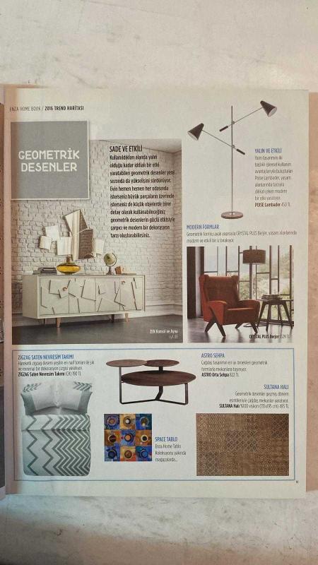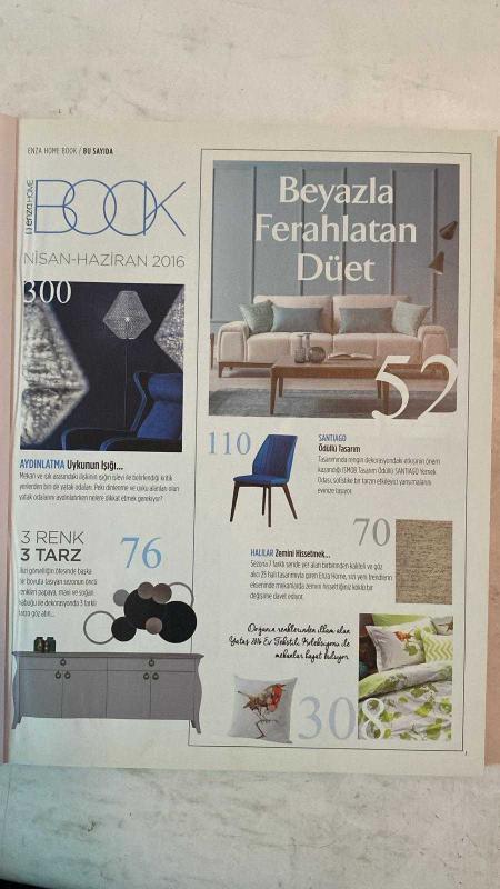 ENZA HOME EV DEKORASYON REHBERİ DERGİSİ - NİSAN-HAZİRAN 2016 SAYI: 40. YIL ENZA HOME - YATAŞ 2016 TREND HARİTASI - BEYAZLA GENİŞLEYEN MEKANLAR - BEYAZLA FERAHLATAN DÜET - AYDINLATMA UYKUNUN IŞIĞI - SANTIAGO ÖDÜLLÜ TASARIM - 3 RENK 3 TARZ - HALILAR ZEMİNİ HİSSETMEK - YENİLENEN EVLER ÖZGÜRLEŞEN HAYATLAR - GEOMETRİK DESENLER - MODERN FORMLAR - VALENTINA KOLTUK TAKIMI - POISE LAMBADER - CRYSTAL PLUS BERJER - ZIGZAG SATEN NEVRESİM TAKIMI - ZEN KONSOL VE AYNA - SPACE TABLO - ASTRO SEHPA - SULTANA HALI - TAM TAKIM EKSİKSİZ 334 SAYFA adlı eser, Kitap > Süreli Yayınlar > Dergiler > Magazin, Moda kategorisinde İkinci El olarak satıştadır.