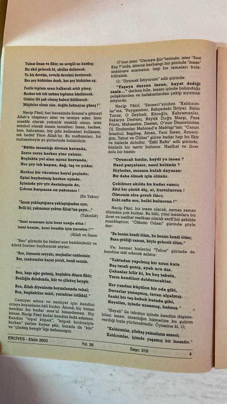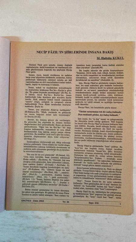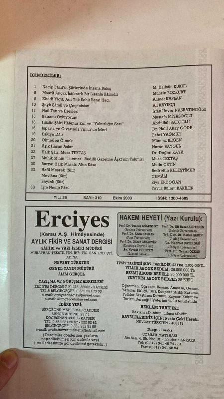 ERCİYES AYLIK FİKİR VE SANAT DERGİSİ - YIL: 26 SAYI: 310 TARİH: EKİM 2003 M. HALİSTİN KUKUL - MUHSİN BOZKURT - AHMET KAPLAN - ALİ KAYIKÇI - İRFAN ÜNVER NASRATINOĞLU - MUSTAFA MİYASOĞLU - ABDULLAH SATOĞLU - HALİL ALTAY GÖDE - BAHRI YAĞMUR - MÜMTAZ BEĞEN - NURAN BAYGÜL - DOĞAN KAYA - MUSA TEKTAŞ - MUTLU ÇETİN - BEDRETTİN KELEŞTİMUR - CEMÂLİ - ZİYA ERDOĞAN - YAVUZ BÜLENT BAKİLER - NEVZAT TÜRKTEN - ALİM GERÇEL - TUNCER GÜLENSOY - AHMET BURAN - GÜRER GÜLSEVİN - ALİ BERAT ALPTEKİN - HATİCE ŞAHİN - MEHMET ÇAYIRDAĞ - NEVZAT ÖZKAN NECİP FAZIL’IN ŞİİRLERİNDE İNSANA BAKIŞ - MAARİF ANCAK İSTİKRARLI BİR LİSANLA KÂİMDİR - NAIL TAN VE ESERLERİ - BABAMI ÖZLÜYORUM - HÜZÜN ŞAİRİ HALENUR KOR VE YALNIZLIĞIN SESİ - EBEDİ YİĞİT ADI YOK ŞEHİT BERAT HACI - ŞEYH ŞAMİL VE ÇEÇENİSTAN - ISPARTA VE CİVARINDA TİMUR’UN İZLERİ - ESKİYE DAİR - ÖLMEDEN ÖLMEK - AŞIK HASAN ASLAN - HALK ŞAİRİ MUSA TEKTAŞ - BURYAT HALK MASALI ALTIN KÂSE - HAFİF MEŞREB - MEVLÂNA - BAYRAK - MUHİBBİ’NİN İSTEME - TAM TAKIM EKSİKSİZ 34 SAYFA, NEVZAT TÜRKTEN tarafından kaleme alınmıştır. Eser ALİM GERÇEL editörlüğünde hazırlanmıştır. ERCİYES AYLIK FİKİR VE SANAT DERGİSİ - YIL: 26 SAYI: 310 TARİH: EKİM 2003 M. HALİSTİN KUKUL - MUHSİN BOZKURT - AHMET KAPLAN - ALİ KAYIKÇI - İRFAN ÜNVER NASRATINOĞLU - MUSTAFA MİYASOĞLU - ABDULLAH SATOĞLU - HALİL ALTAY GÖDE - BAHRI YAĞMUR - MÜMTAZ BEĞEN - NURAN BAYGÜL - DOĞAN KAYA - MUSA TEKTAŞ - MUTLU ÇETİN - BEDRETTİN KELEŞTİMUR - CEMÂLİ - ZİYA ERDOĞAN - YAVUZ BÜLENT BAKİLER - NEVZAT TÜRKTEN - ALİM GERÇEL - TUNCER GÜLENSOY - AHMET BURAN - GÜRER GÜLSEVİN - ALİ BERAT ALPTEKİN - HATİCE ŞAHİN - MEHMET ÇAYIRDAĞ - NEVZAT ÖZKAN NECİP FAZIL’IN ŞİİRLERİNDE İNSANA BAKIŞ - MAARİF ANCAK İSTİKRARLI BİR LİSANLA KÂİMDİR - NAIL TAN VE ESERLERİ - BABAMI ÖZLÜYORUM - HÜZÜN ŞAİRİ HALENUR KOR VE YALNIZLIĞIN SESİ - EBEDİ YİĞİT ADI YOK ŞEHİT BERAT HACI - ŞEYH ŞAMİL VE ÇEÇENİSTAN - ISPARTA VE CİVARINDA TİMUR’UN İZLERİ - ESKİYE DAİR - ÖLMEDEN ÖLMEK - AŞIK HASAN ASLAN - HALK ŞAİRİ MUSA TEKTAŞ - BURYAT HALK MASALI ALTIN KÂSE - HAFİF MEŞREB - MEVLÂNA - BAYRAK - MUHİBBİ’NİN İSTEME - TAM TAKIM EKSİKSİZ 34 SAYFA adlı eser Türkçe dilindedir.
