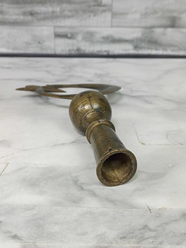 Dönem: Erken Cumhuriyet Dönemi Malzeme: Masif Pirinç / Bronz Döküm Kondisyon: Yüksek Kondisyonlu, Orijinal Patineli Ürün Açıklaması: Türk milletinin bağımsızlık sembolü olan ay-yıldız figürünün en estetik formlarından birini yansıtan bu özel Alem, Erken Cumhuriyet dönemine ait karakteristik işçilik özelliklerini taşımaktadır. Dönemin ruhuna uygun olarak yalın ama vakur bir tasarıma sahiptir. Tasarım Detayları: Hilal formu, dolgun ve geometrik olarak dengelidir. Hilalin ucunda yer alan beş kollu yıldız, dönemin döküm teknikleriyle gövdeye bütünleşik veya sabitlenmiş şekilde form bulmuştur. İşçilik: El işçiliği ile form verilmiş, torna ve döküm teknikleri bir arada kullanılmıştır. Gövde üzerindeki boğumlu (küre) yapı, klasik Osmanlı-Türk alem geleneğinin devamlılığını göstermektedir. Patine ve Renk: Zamanın etkisiyle yüzeyde oluşan doğal oksitlenme (eski pirinç patinesi) korunmuştur. Herhangi bir parlatma işlemi yapılmamış olup, antika değerini artıran en önemli unsurlardan biri olan "yaşanmışlık" dokusu üzerindedir. Kullanım Alanı: Sancak başlığı olarak kullanılabileceği gibi, dönem yapılarının (cami, mescit veya kamusal binalar) çatı ve kubbe bitimlerinde sembolik amaçlı tasarlanmış bir eserdir. Koleksiyon Değeri: Özellikle Milli Mücadele ve Cumhuriyet’in ilk yıllarına ait askeri veya mimari objelere ilgi duyan koleksiyonerler için kaçırılmayacak bir parçadır. Formu bozulmamış, kırığı veya onarımı bulunmayan nadir bir örnektir. Öne Çıkan Özellikler: %100 orijinal dönem ürünüdür. Yekpare masif yapısı sayesinde oldukça ağır ve toktur. Alt kısmındaki montaj yuvası sağlam durumdadır; kaideye oturtulmaya veya sergilenmeye uygundur. Not: Ürünün detaylı fotoğrafları her açıdan çekilmiştir. Lütfen döküm izlerini ve doğal patinesini inceleyiniz. İç haznede somunu eksiktir