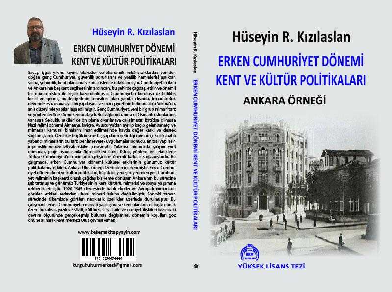 ERKEN CUMHURİYET DÖNEMİ KENT VE KÜLTÜR POLİTİKALARI ANKARA ÖRNEĞİ, HÜSEYİN R. KIZILASLAN tarafından kaleme alınmıştır. Eser ALAATTİN TOPÇU editörlüğünde hazırlanmıştır. Kitap 2025 yılında KeKeMe Yayınları tarafından [Ankara] 978-605-6694-44-6 ISBN kodu ile yayınlanmıştır. Satışta olan kitap, yayınevinin 1. baskısıdır. 131 sayfadır. Sayfa bilgisi AKADEMİK olarak belirtilmiştir. ERKEN CUMHURİYET DÖNEMİ KENT VE KÜLTÜR POLİTİKALARI ANKARA ÖRNEĞİ adlı eser Türkçe dilindedir.