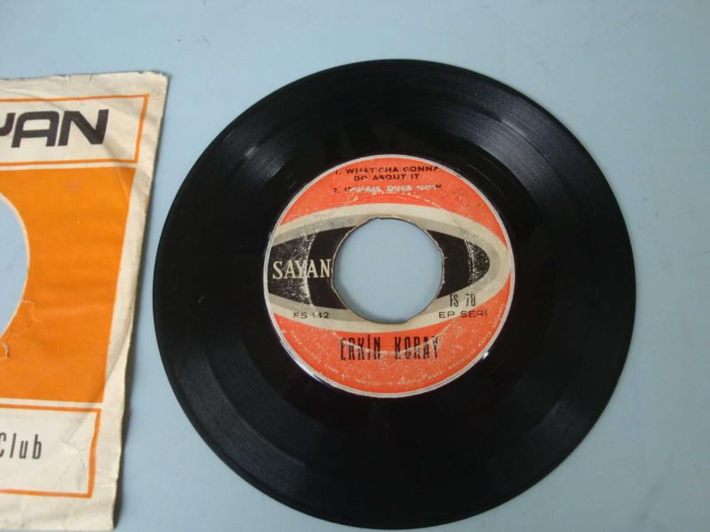 ERKİN KORAY ( MUSTAFA ERKİN KORAY ) " Balla Balla - You've Gote to Hide Your Love Away - What'cha Gonna Do About It - It's All Over Now " 45 RPM EP ( SAYAN PLAK ) Orj. Firma Kapak : 7 - Plak : 6 ( Göbeksiz ) Kapak TEMİZ , Plak da atlama - takılma yapmayan yoğun kılcal izler mevcut